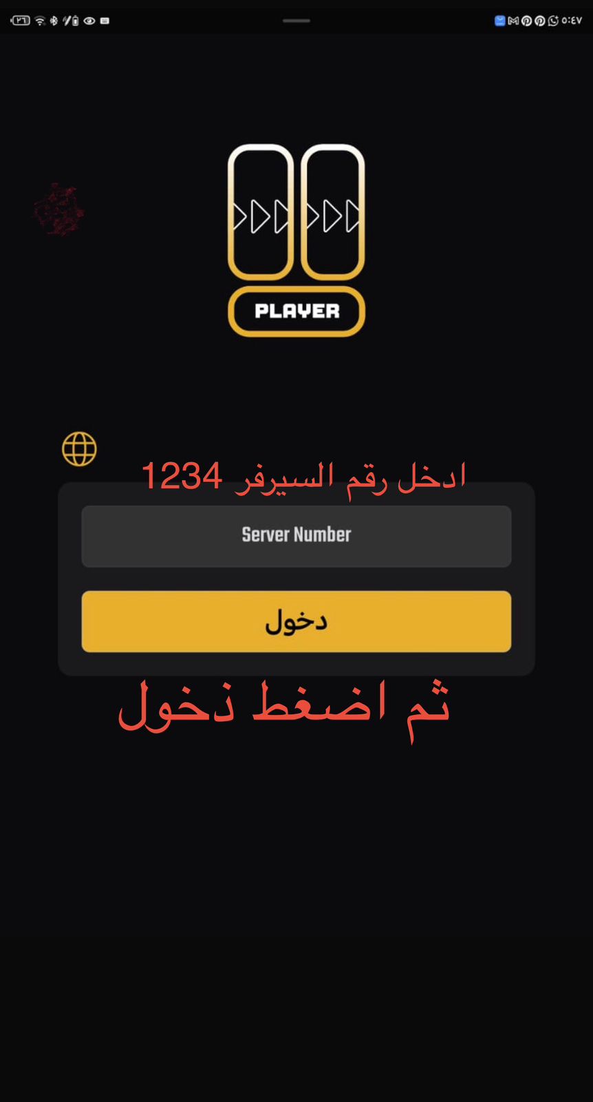 ثالثاً سوف يظهرلك الواجهه التطبيق ادخل رقم السيرفر (1234)